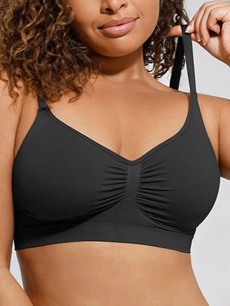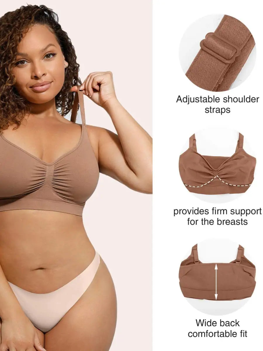 This best-selling seamless sculpting bralette contours your curves with pique stitching along the front and sides that flatter and define the bust while offering ultra-strong support. Features a scoop front and adjustable straps for your best fit. Fits true to size.