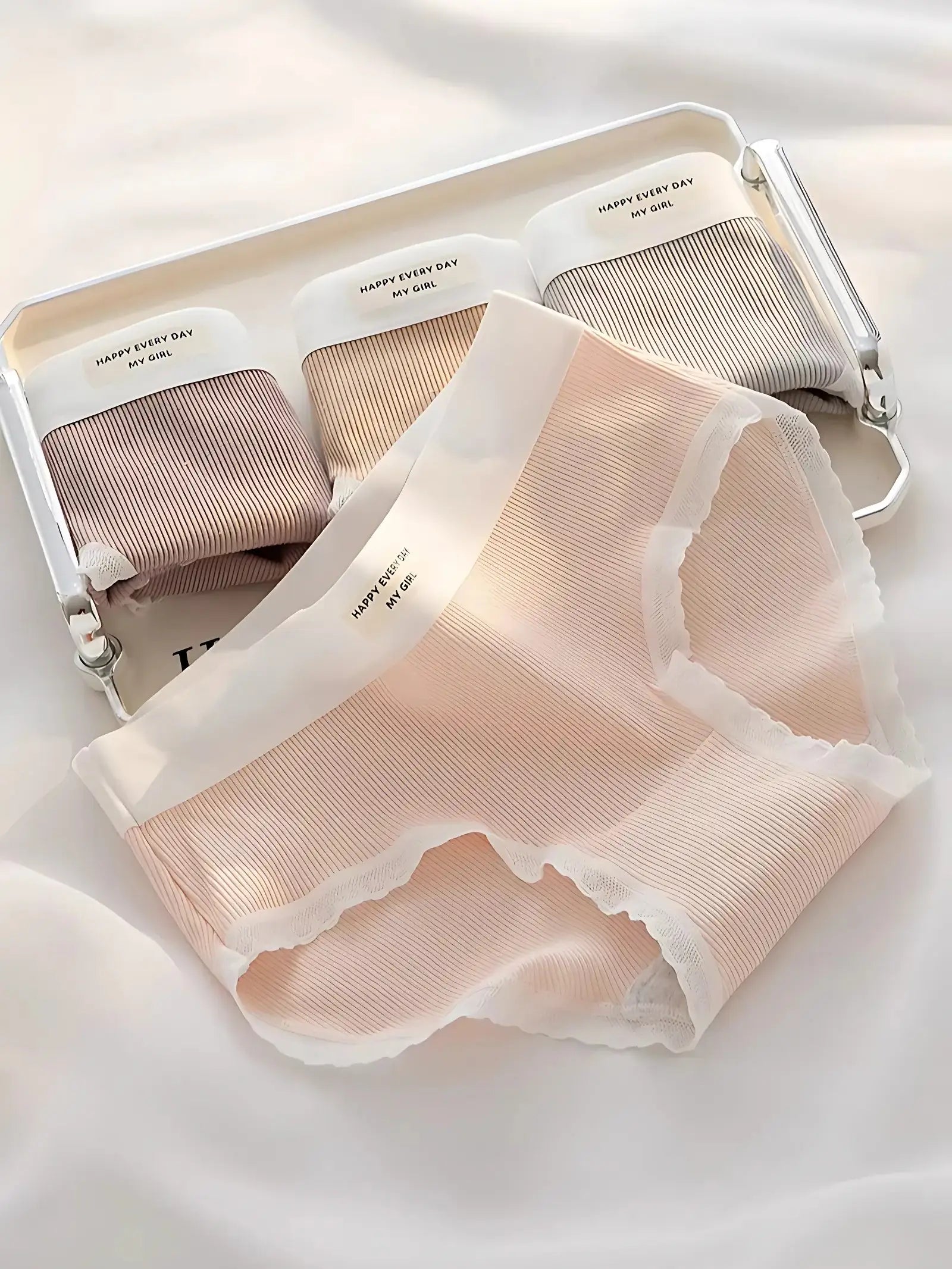 Fall in love with comfort and cuteness in our Ribbed Cotton Lace-Trim Panties. Made from a gentle cotton-blend fabric with a fine ribbed texture, these panties are designed to keep you feeling fresh, cozy, and confident all day long.